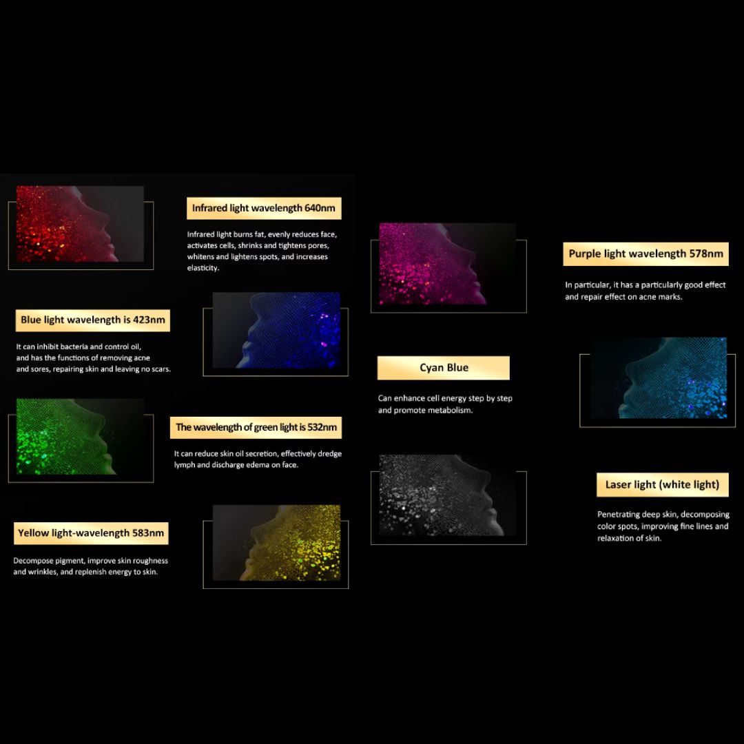 Светодиодная маска работает, испуская определенные длины волн света, которые проникают в кожу на разную глубину. Каждый цвет решает уникальные проблемы кожи, способствуя заживлению и омоложению без нагрева или ультрафиолетовых лучей.